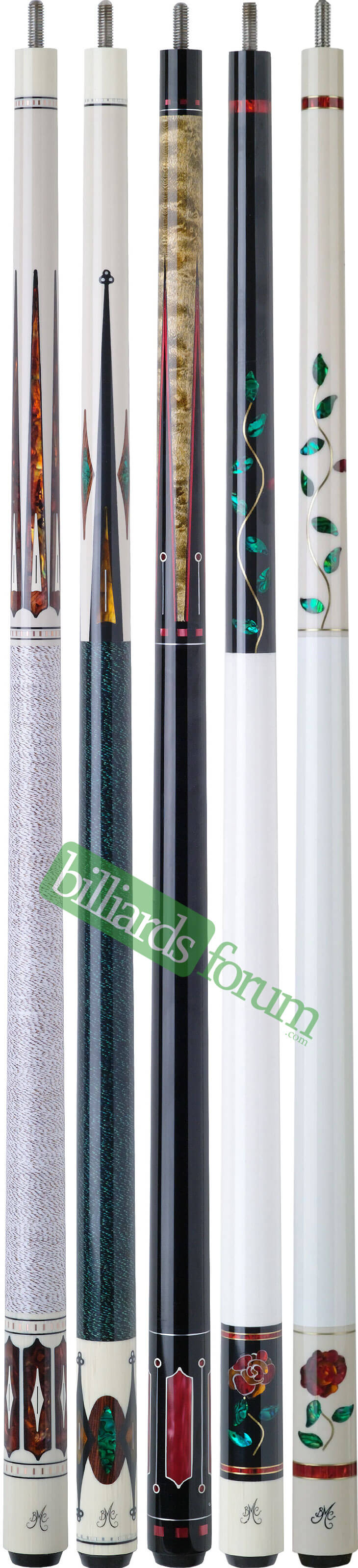 Images of BMC's 2009 lineup of limited edition pool cue releases.