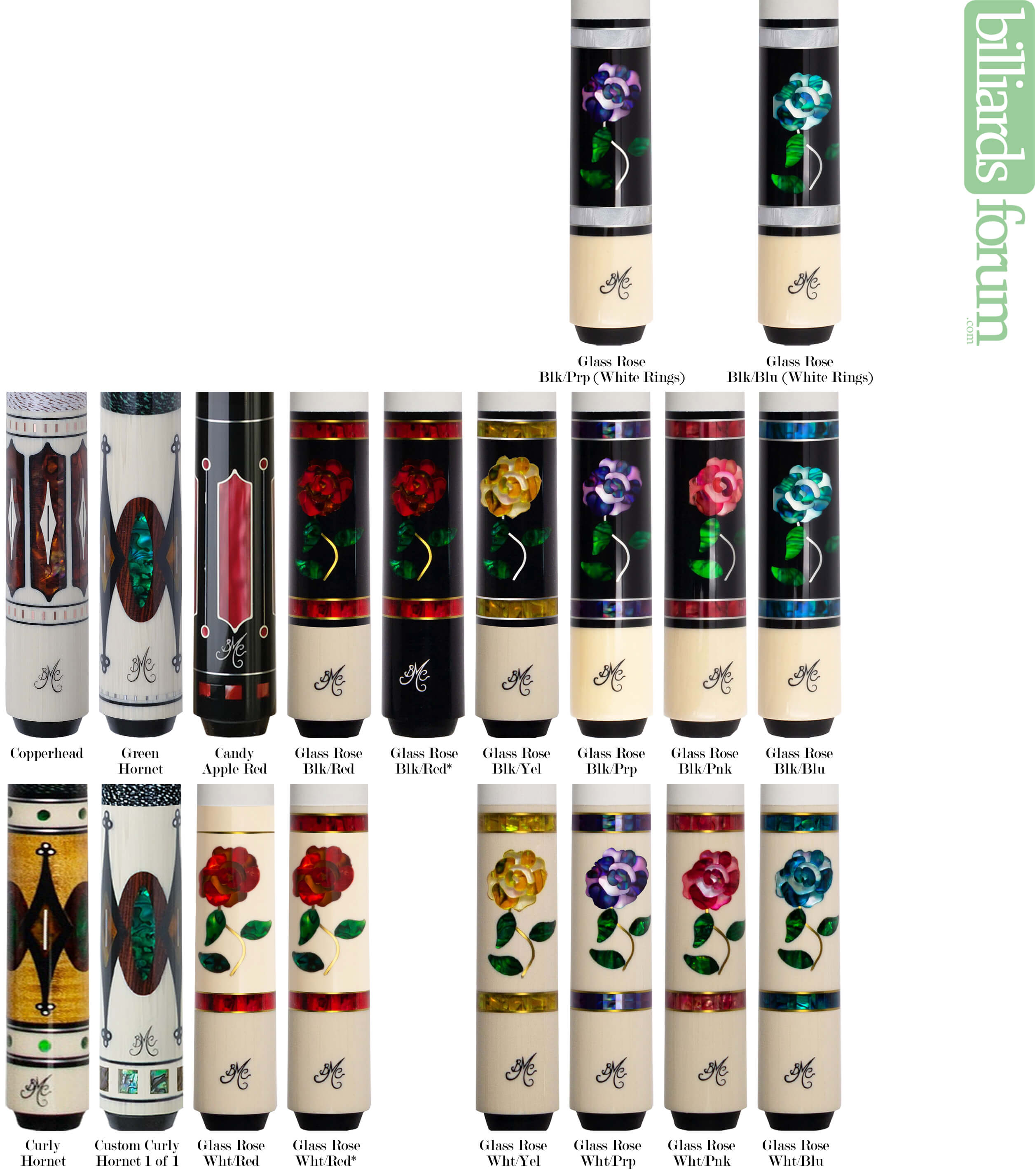 - Glass Rose Cue (Black with Red Rose only) - ~Mar 2023 - This version has a black butt cap (instead of the standard white)