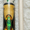 Picture of a BMC Curly Green Hornet pool cue. This cue is a newer variation (circa 2022) of the original 2009 "Green Hornet" model.