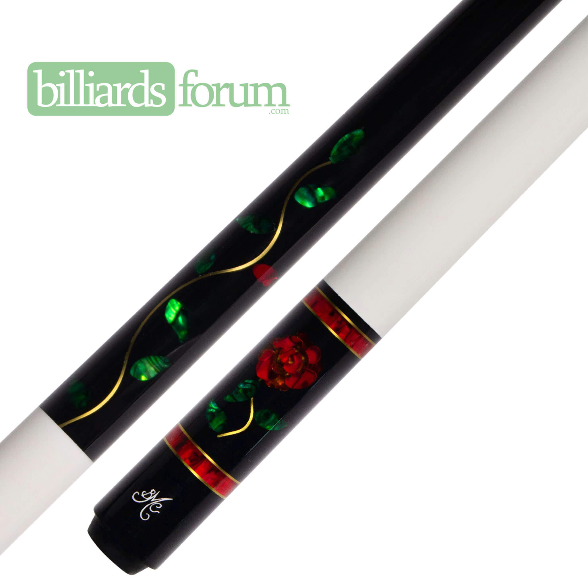 Info on the BMC Glass Rose Pool Cue (Red Rose with Custom Black Butt Cap)