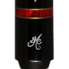 BMC Glass Rose Black/Red pool cue with a custom black butt cap and joint collars. It is shown here with a Meucci "The PRO" shaft (also with the custom black collar).