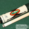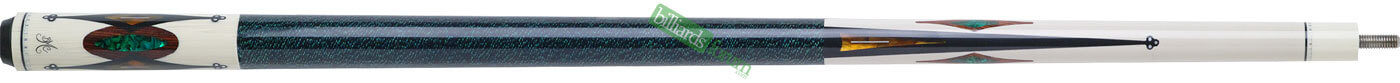 The new BMC Green Hornet is a Power Piston cue design that carries three black points in the forearm, with three cocobolo diamonds in between each point. Inlaid in the center of the cocobolo diamonds are beautiful green Paua Shell diamonds.