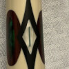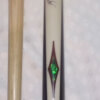 Photo of a BMC Green Hornet pool cue showing a close up of one of the diamond shaped inlays in the forearm.