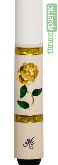 This BMC cue stick is the BMC White Glass Rose cue with yellow Rose.