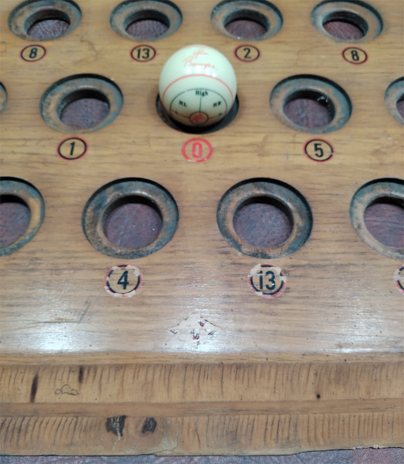 This looks like a board that was placed on a pool table. Like an early version of a pinball game.