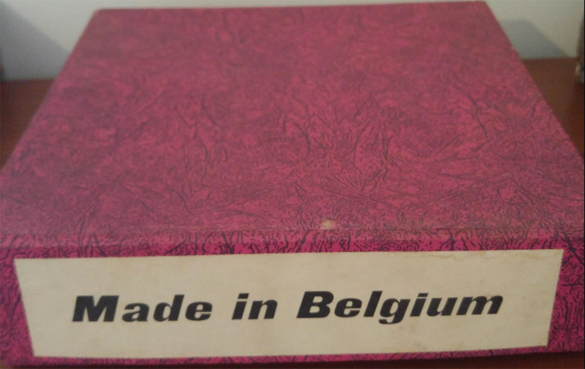 On the back is a stamp with 2 1/4" (I have attached a picture) and the tissue paper that wraps the balls has "Made in Belgium" on them.