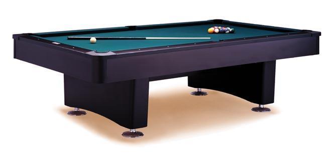 Hardwood construction and strict tolerances for years of competitive play. Here in Matte Black laminate with matching powder-coated corners and extrusions. Sizes: 7 ft, 8 ft, 8.5 ft, 9 ft, 10 ft, & 12 ft. Available with pool, snooker, or billiard rails.