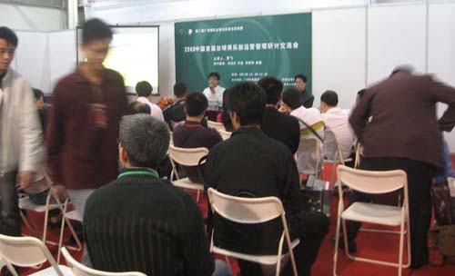 Below are photographs from this year's China (Guangzhou) Billiards Exhibition cue sport industry conference.Foreign brand cues are welcome at GBE2008:
