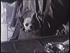The film starts, surprisingly, without a voiceover, but the opening visuals do a pretty good job of explaining the state of society. Harry (Bisley) is seen dressed in typical tramp attire but with the addition of some furs, silly pool ball earrings and a tiny little dog in his front pocket like Paris Hilton.