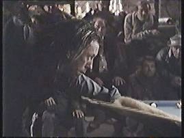 Meanwhile some minor characters decide to attack Topdog in the back room of the hall, but something is obviously edited out from the tape because it flicks to a later scene where Topdog is offering Harry a lift on his re-claimed motorbike.