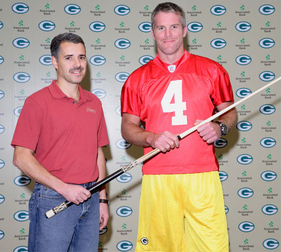I am working on a special pool cue project for charity. A very unique pool cue with Brett Favre. There will only be 25 made. All will be hand signed by Brett Favre and numbered. J Pechauer Custom Cues plans to raise a minimum of $60,000. to donate to the Brett Favre Fourward/Deanna Favre Foundations.