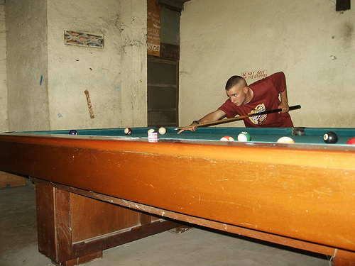 The billiard room photo titled "Shooting Pool in Bicol Region Philippines" was taken by nicearmyguy81 on 2003-12-21 21:05:16.000 and uploaded to flickr on 2008-08-03 21:05:16.000. It was retrieved from a public flickr feed on 2008-08-04 05:22:49.000. The accompanying article was written and published by the Billiards Forum. The publish date of the text content is found below.