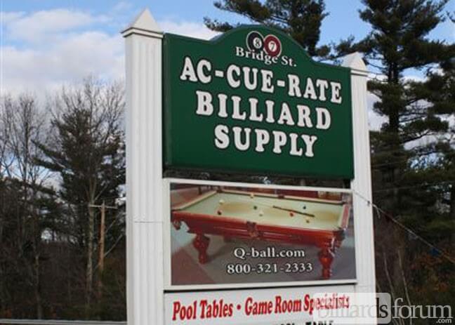Store photos of Ac-Cue-Rate Billiards Pelham, NH, including photos of the signage and storefront.