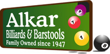 A Alkar Billiards & Barstools Omaha, NE logo.