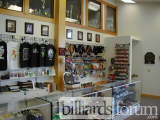 The billiard accessories area inside of All About Game Rooms in Bend, OR.