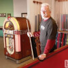 The owner at All About Game Rooms in Bend, OR standing by a pool table and holding a pool cue.