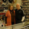 The owners behind the front counter area inside of All About Game Rooms in Bend, OR.