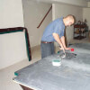Finishing and smoothing the slate table top. The billiard service team from the Atlantic Billiards Bars & Spas Service Department working on setting up a Connelly pool table.