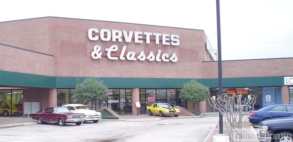 The front entrance of Barney's Billiard Supply in Houston, TX.