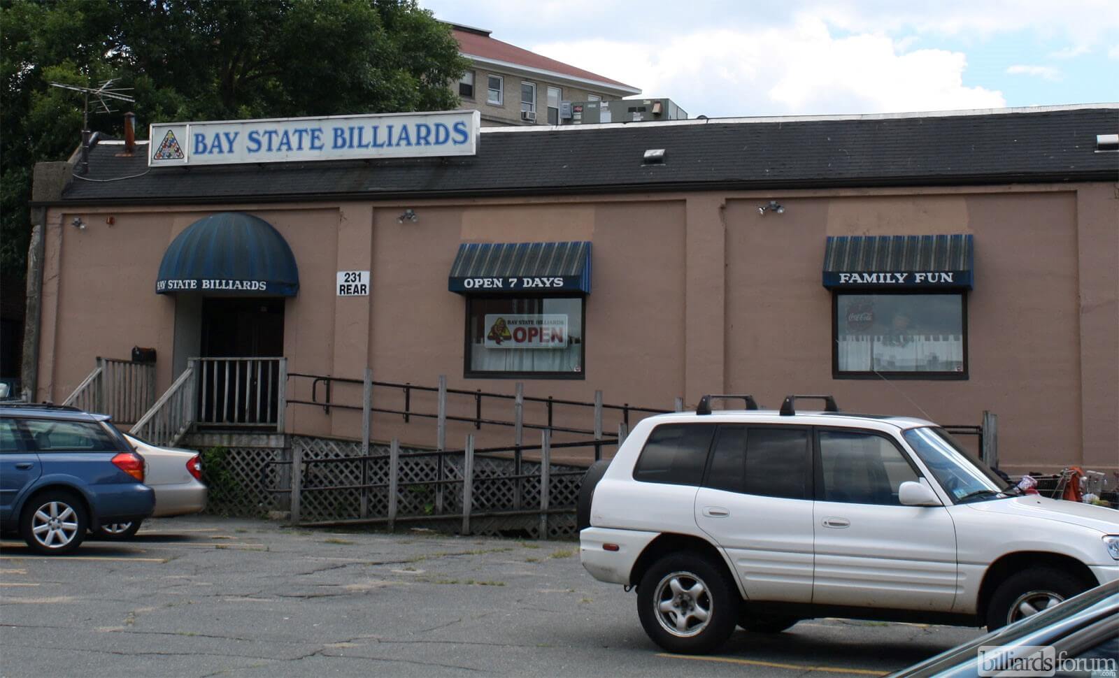 The front entrance of Bay State Billiards pool hall in Salem, MA.