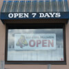 The business hours sign at the front entrance of Bay State Billiards in Salem, MA.