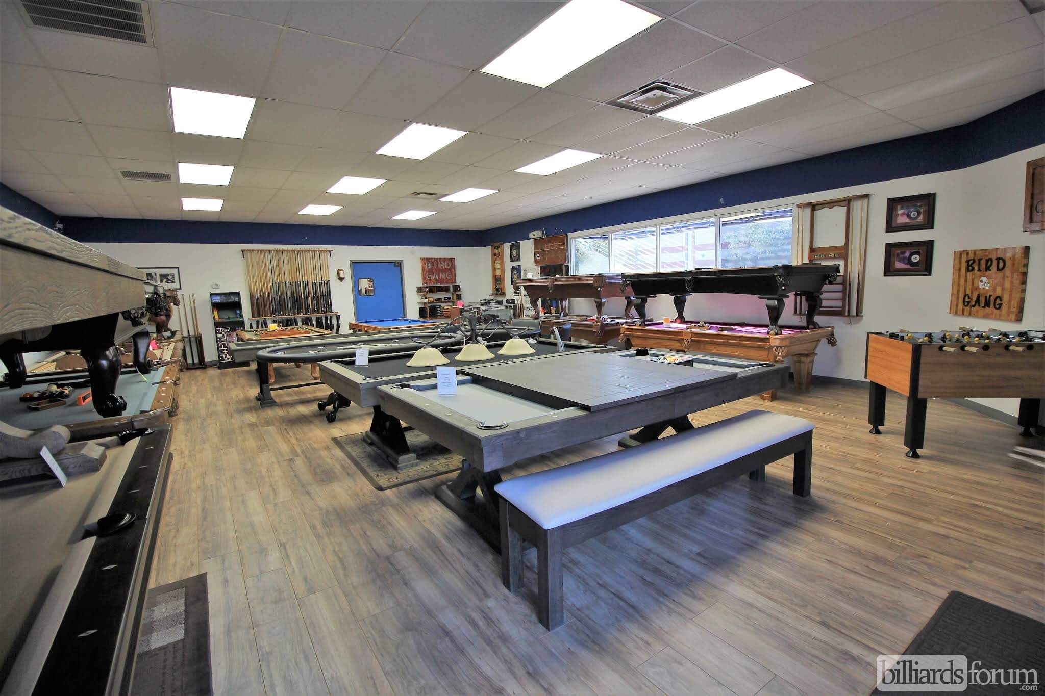 Photos from inside the Beck's Billiards Phoenix, AZ billiard supply and pool table store.