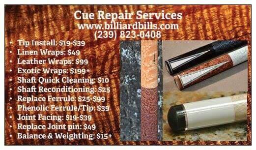 - (239) 823-0408 (Billiard Bill's Cue Repair Florida Phone Number)