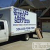 The pool table deliver and service truck on site at a customer's location. The company name is Billiard Table Services of Jonesville, NC.