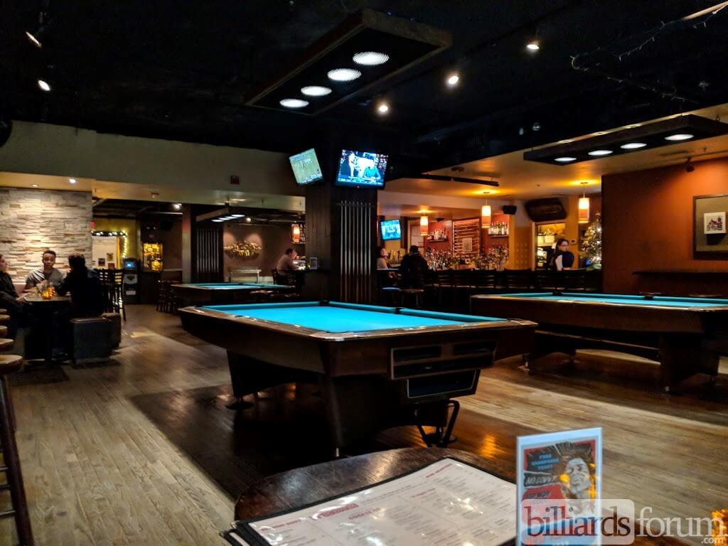 The pool table layout at Breadsoda, a Washington, DC pool hall.