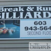 A flyer showing the address and contact info for Break and Run Billiards in Nashua, NH.