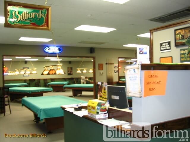 NOTE: The Break Zone Billiards pool hall is no longer in business and this location is CLOSED.