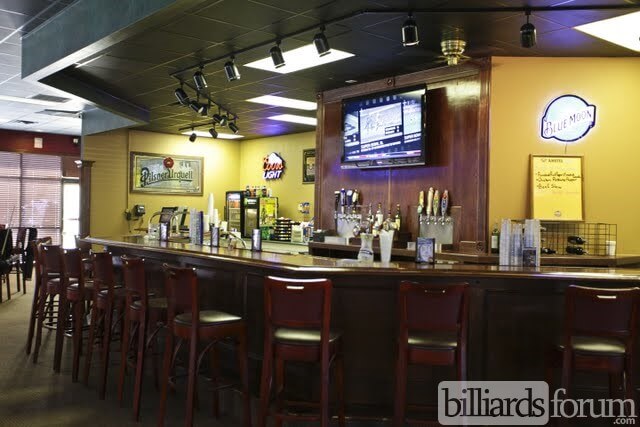 The bar area inside of Buck's Billiards in Raleigh, NC.