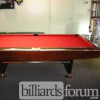 The red cloth is hard on the eyes. This pool table is seen at CarPool Billiards, a pool room in Herndon, VA.