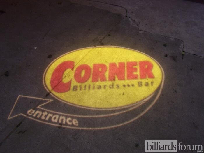 This is a logo from the Corner Billiards pool hall in New York, NY.