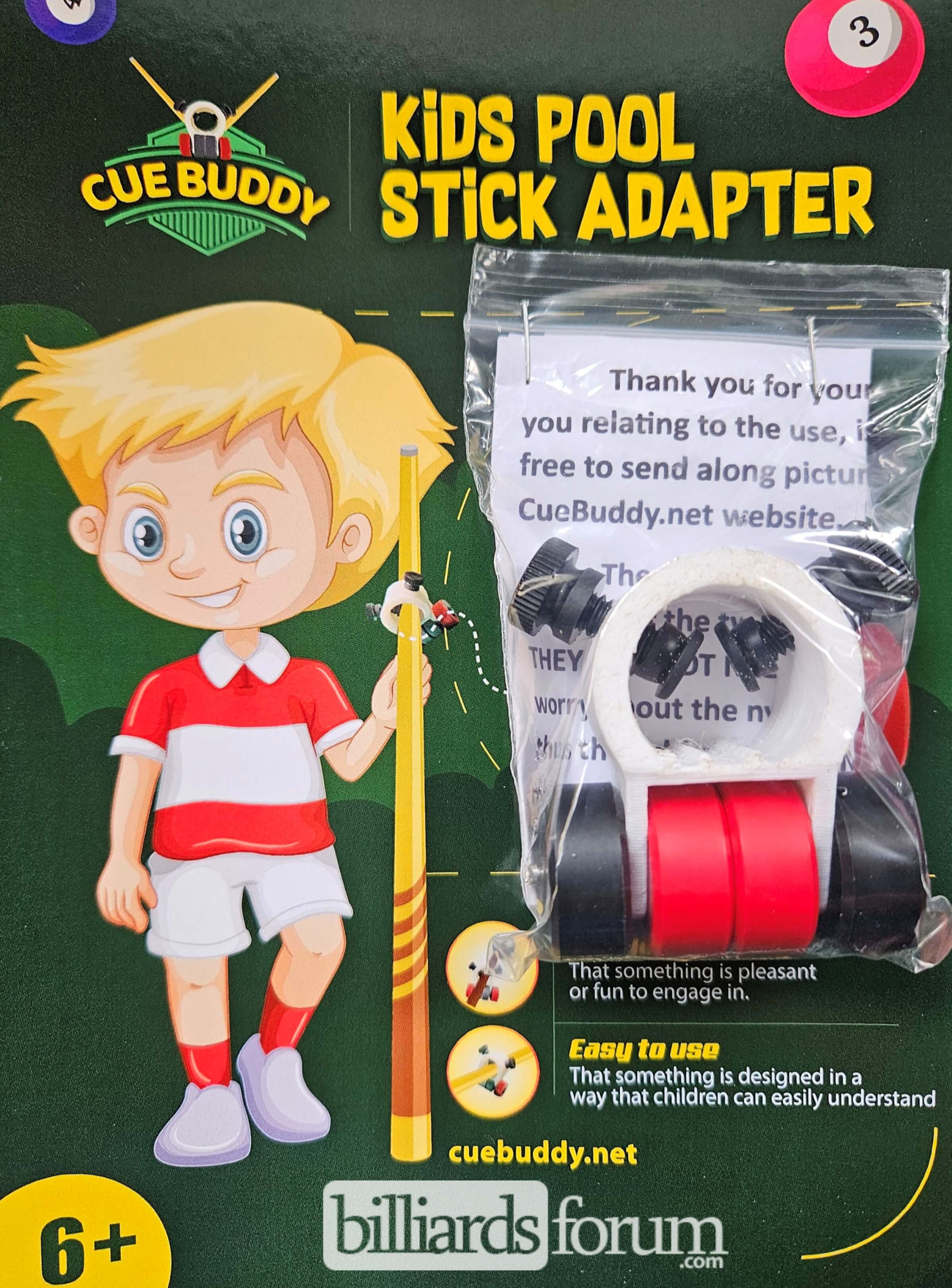 Improved reach at the pool table: Children may struggle to reach certain shots on a standard pool table due to their height. A pool CueBuddy Stick Adapter can extend the balance of the cue allowing them to reach shots that would otherwise be difficult or impossible.