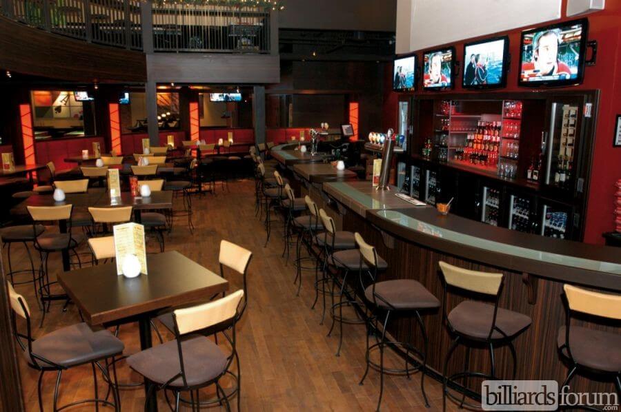 The pool table area inside of Dooly's in Longueuil, QC.