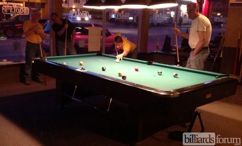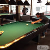 A pool player shoots inside of Dooly's in St Stephen, NB.