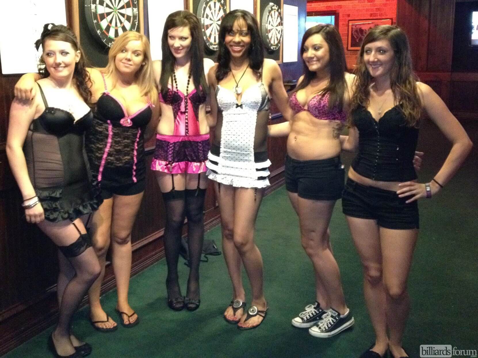 Bartenders, cocktail waitresses, and wait staff at Fast Eddie's in Bossier City, LA. Bossier City Fast Eddy's is a pool hall and lounge.