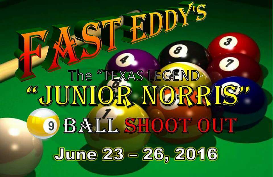 This is a flyer from Fast Eddy's Billiards in Wichita Falls, TX showing the details of the "Fast Eddy's Junior Norris 9 ball shootout".
