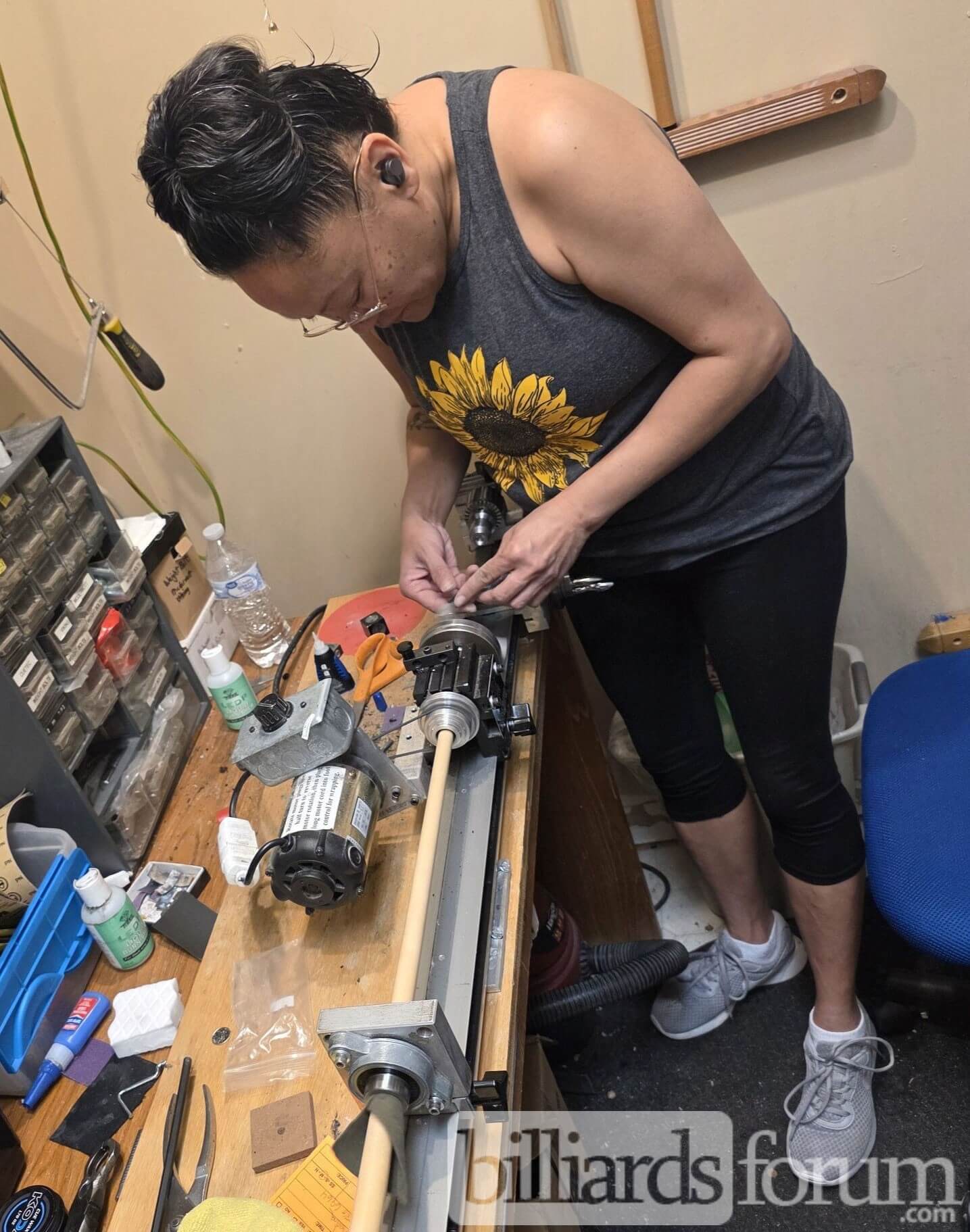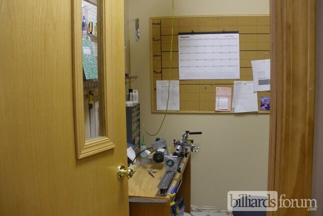 Photo of the pool cue service room at the Front Range Pool Table Co. in Fort Collins, CO.