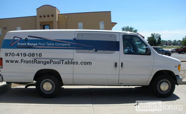The pool table delivery truck from Front Range Pool Table Co., a Fort Collins, CO billiard supply store.