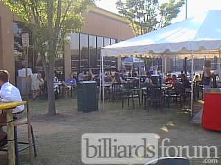 The tent and patio area at Game Time Riptide in Greenville, SC.