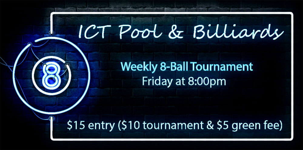 ICT Pool and Billiards runs weekly 8 ball tournaments and 9 ball tournaments: