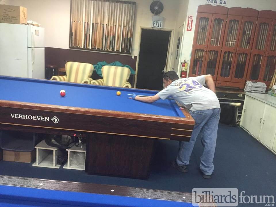 King Billiards has 5 new Verhoeven (heated) tables. It has a nice owner, the place is fantastic, and the location is in Garden Grove (with lots of parking spaces). Address: 8345 Gardengrove Blvd. Garden Grove, CA 92844. There is a House Tournament every Sunday 3 pm. If you wish to know some more information regarding King Billiard or the tournament, please call 714) 458-9995. Frank (Joong Kyu) Lee.