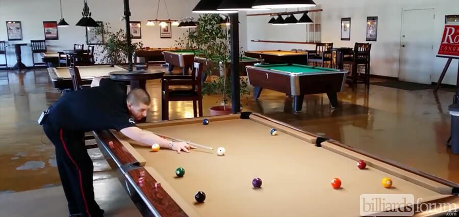 Pro pool player and Meucci-sponsored player Jayson Shaw, shooting a game of 8-ball at Meucci Family Billiards, a Byhalia, MS pool hall.