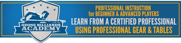 This is a flyer for billiard lessons from Ozone Billiards Norcross, GA.