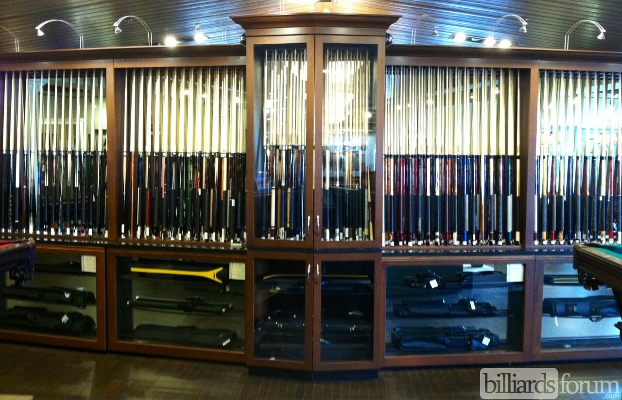 Cue sticks for sale at Peters Billiards, a Minneapolis, MN billiard supply store.
