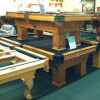 A selection of clearance pool tables for sale at Peters Billiards, a game room in Minneapolis, MN.