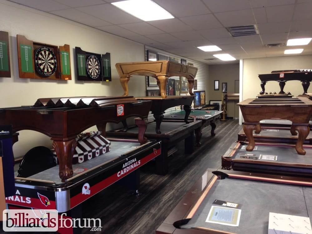 Store photos of Prestige Billiards' Phoenix, AZ location. They've since moved from that location and now have locations in Mesa, Glendale, and Scottsdale, Arizona.