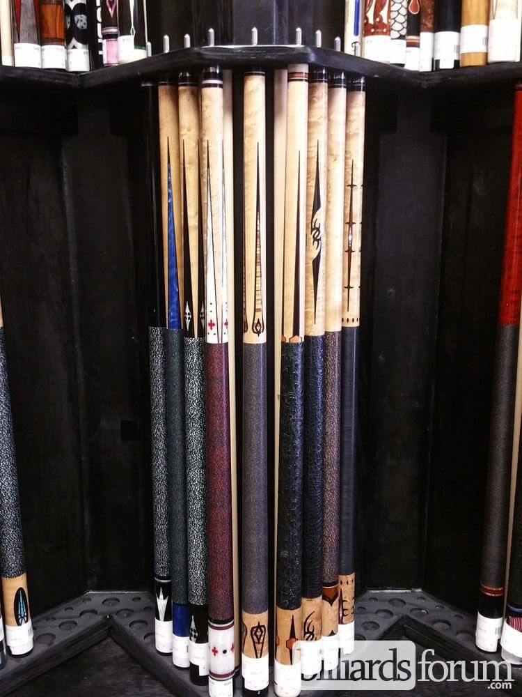 A selection of in-stock Viking cues at the Phoenix, AZ Prestige Billiards.